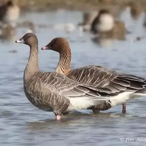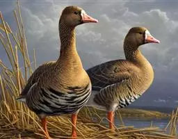 细嘴雁:是雁属中体形大,个体重的鸟类。飞行时双翼拍打用力,振翅频率高。脖子较长。腿位于身体的中心支点,…