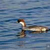 斑头秋沙鸭,是鸭科、斑头秋沙鸭属鸟类。雄鸟眼先和眼周黑色,成块斑状;头部其余部分全为白色。…