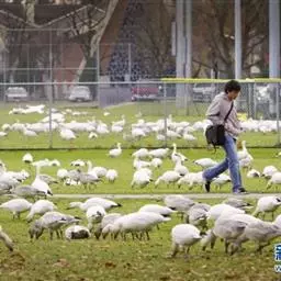雪雁是鸭科雁属鸟类,雁属中体形大,个体重的鸟类。羽毛洁白,翼角黑色。飞行时双翼拍打用力,振翅频率高。…