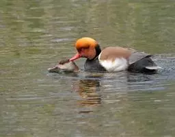 红头潜鸭为鸟纲雁形目鸭科潜鸭属动物,又名红头鸭,矶凫,体长约46厘米;雄鸟头部栗红色,胸部黑色,…