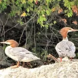 红胸秋沙鸭属中等食鱼鸭类,体长53厘米。嘴细长而带钩,捕食鱼类。丝质冠羽长而尖。雄鸟黑白色,两侧多…