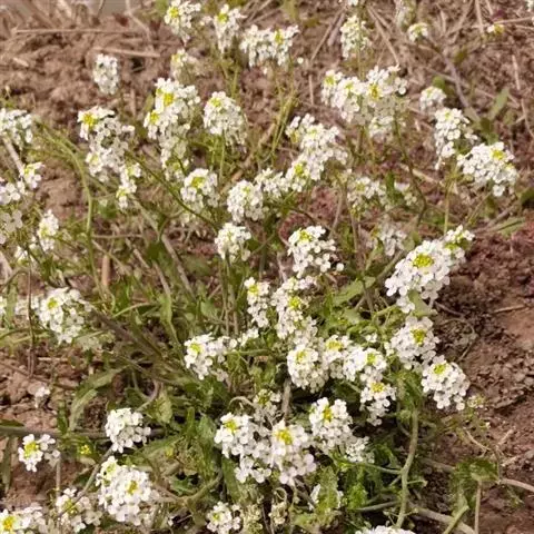 花序排列成圆锥状;花多数,花梗纤细,长4-5毫米;萼片直立,稍开展,条形,长约3毫米,宽约1.5毫米,边缘及顶端薄膜质,白色透明;花瓣白色,倒卵形,长5-6毫米,宽约3毫米,顶端钝圆或带波状,脉纹明显,基部渐狭呈爪;短雄蕊长约1毫米,长雄蕊长约2毫米,花丝细而扁,向基部稍扩大;子房卵圆形,长约2毫米,花柱极短,柱头扁头状,较花柱宽。短角果卵圆形至椭圆形,长3-5毫米,宽约1.5毫米,有宿存短花柱及扁压状柱头;果瓣隆起,具网状脉,无中脉,熟时开裂;隔膜纺锤形,白色膜质,内有种子2行,每行4-6粒。