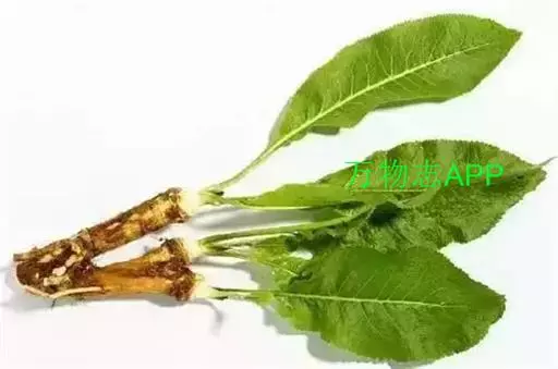 多年生直立草本,高达1米上下,全体无毛。根肉质肥大,纺锤形,白色,下部分枝。茎粗壮,表面有纵沟,多分枝。基生叶长圆形或长圆状卵形,长15-35厘米,宽7.5-15厘米,边缘具圆齿,顶端短尖或渐尖,基部心形或楔形而稍下延,叶片背面羽状网脉突起,叶柄半圆形,长达30厘米,上面凹陷;茎生叶无柄或有短柄,下部的叶长圆形至长圆状披针形,边缘通常羽状浅裂,中部的叶广披针形,上部的叶渐小,披针形至条形,边缘具不整齐锯齿或圆齿或全缘。