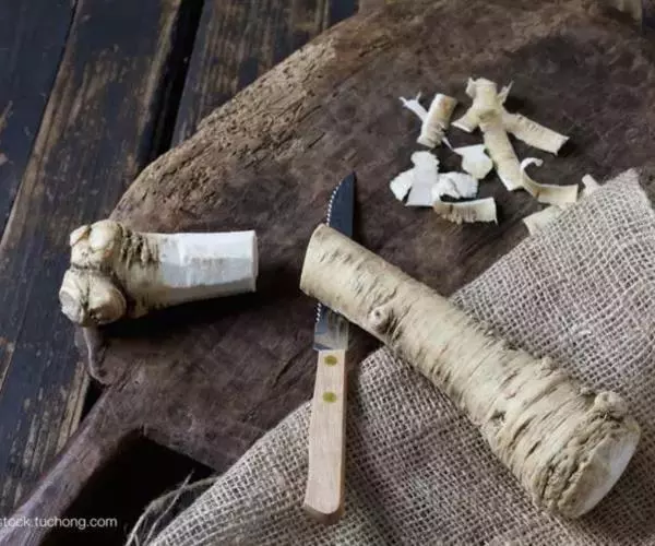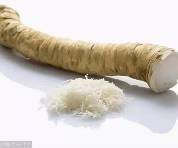 辣根,别名:马萝卜,山葵萝卜等,属双子叶植物纲、白花菜目、十字花科、辣根属多年生直立草本。全体无毛。根肉质肥大,纺锤形,白色,下部分枝。茎粗壮,表面有纵沟,多分枝。