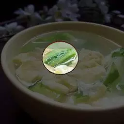此汤中白菜富含纤维素,专以通利大便;猪肉补血润肠。用于血虚肠燥,大便秘结。