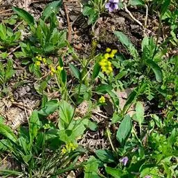 二年生草本,高40-60厘米,常全株无毛,有时叶下面中脉上有少数刺毛。基生叶多数,大形,倒卵状长圆形至宽倒卵形,长30-60厘米,宽不及长的一半,顶端圆钝,边缘皱缩,波状,有时具不显明牙齿,中脉白色,很宽,有多数粗壮侧脉;叶柄白色,扁平,长5-9厘米,宽2-8厘米,边缘有具缺刻的宽薄翅;上部茎生叶长圆状卵形、长圆披针形至长披针形,长2.5-7厘米,顶端圆钝至短急尖,全缘或有裂齿,有柄或抱茎,有粉霜。花鲜黄色,直径1.2-1.5厘米;花梗长4-6毫米;萼片长圆形或卵状披针形,长4-5毫米,直立,淡绿色至黄色;花瓣倒卵形,长7-8毫米,基部渐窄成爪。长角果较粗短,长3-6厘米,宽约3毫米,两侧压扁,直立,喙长4-10毫米,宽约1毫米,顶端圆;果梗开展或上升,长2.5-3厘米,较粗。种子球形,直径1-1.5毫米,棕色。花期5月,果期6月。