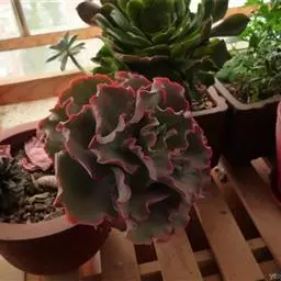 高砂之翁是景天科,拟石莲花属的多肉植物。特征是其边缘呈大波浪卷形的宽大叶片,…