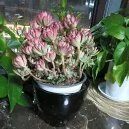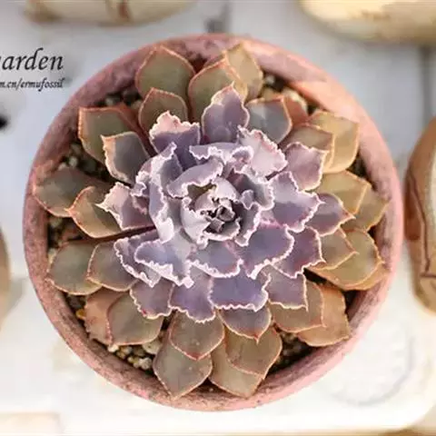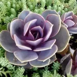 紫珍珠是景天科石莲花属的多年生肉质草本植物。植株中小型;叶片肉质,匙形,呈莲座状紧密排列;叶片粉紫色,…