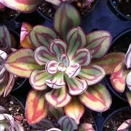 锦司晃是景天科拟石莲花属的多肉植物,原产地为墨西哥。与锦晃星相似,但叶片要厚很多,…