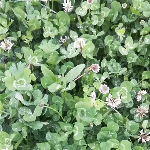 白车轴草,豆科车轴草属的多年生草本植物,茎贴地匍匐;叶柄直立,小叶心形,边缘具细齿,叶脉明显,…