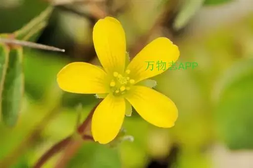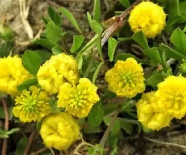 一年生草本,高 (5) 10-30 (-40) 厘米。茎纤细,平卧或匍匐,基部略分枝,上部被稀疏短柔毛。掌状三出复叶;托叶斜卵形,长4-8毫米,先端锐尖,基部圆,边缘具睫毛;叶柄长6-10毫米;小叶倒卵形,长5-10 (-12) 毫米,宽3-8毫米,纸质,先端微凹,基部阔楔形,边缘在上部具不明显锯齿,两面无毛,侧脉6-8对,与中脉作45°角展开;顶生小叶柄稍长。头状花序疏松,具花5-15朵;总花梗长0.5-3 (-4) 厘米,着生上部叶腋,比叶短,被毛;苞片小,刺毛状;花长3-4毫米;花梗甚短,不到1毫米,花后反折下垂;萼钟形,长约2毫米,无毛,具脉纹5条,萼齿三角状锥形,比萼筒长,上方2齿甚短,下方3齿明显较长;花冠鲜黄色,花开后变棕色,旗瓣扁平,基部渐窄,中央具模糊条纹。荚果长圆形,长1.5-2毫米,先端具短喙,基部果颈长1毫米。花果期4-9月。