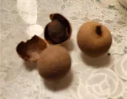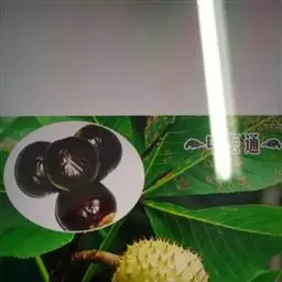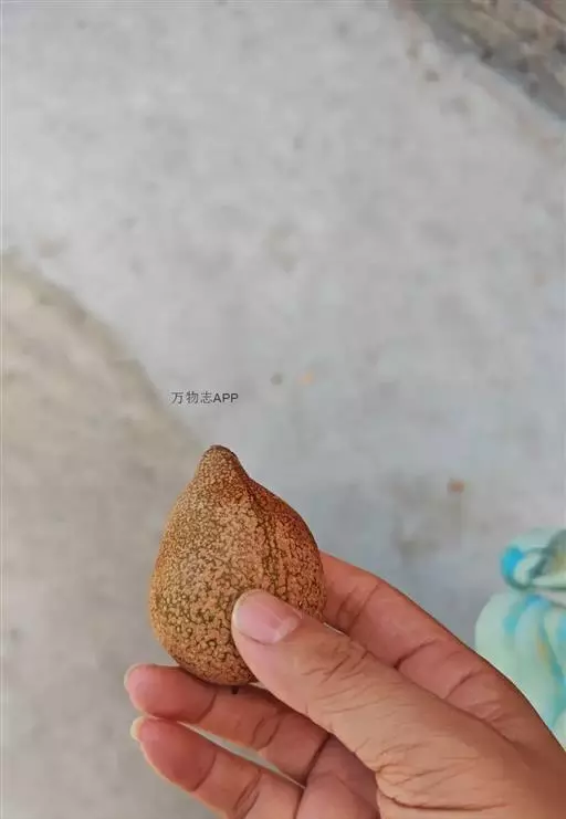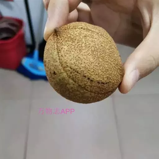果实球形或倒卵圆形,顶部短尖或钝圆而中部略凹下,直径3-4厘米,黄褐色,无刺,具很密的斑点,果壳干后厚5-6毫米,种子常1-2 粒发育,近于球形,直径2-3.5厘米,栗褐色;种脐白色,约占种子体积的1/2。花期4-5月,果期10月。