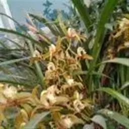 兔耳兰(学名:Cymbidium lancifolium Hook.):半附生植物,假鳞茎近扁圆柱形或狭梭形,有节,多少裸露,顶端聚生2-4枚叶,叶倒披针状长圆形至狭椭圆形,叶柄长3-18厘米,花葶从假鳞茎下部侧面节上发出,直立,花序具2-6朵花,较少减退为单花或具更多的花,花通常白色至淡绿色,花瓣上有紫栗色中脉,唇瓣上有紫栗色斑,花期5-8月。
