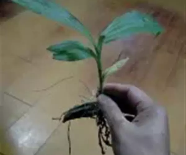 准备好兰盆及植料后,将兰株倒拿(根在上,叶在下)放于水龙头下以慢水冲洗,但水压切忌过强,以免伤兰根及叶子。用拇指和食指抓住兰头,小指抵住盆缘,用竹筷将根固定,当放入盆内时,尽量不要让根接触到盆壁。将豆粒大的混合石砾倒入盆底至三分之一处。然后倒入中粒植料至五分之四处,填实和尽量不要留下空间。将竹筷拔出,并摇实盆中植料。填实植料后,再用大粒植料埴入至距盆缘1.5厘米处。最后再倒入豆粒大植料,以将假鳞茎全部埋入土中为度,然后充分摇实。用压土工具轻压植料,并将表面弄平。种植完毕后,植料在盆中以中央稍高为好。