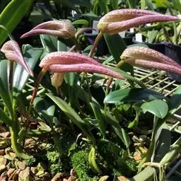 其品种甚多,较常见的有竹叶兔耳兰、高脚兔耳兰、矮脚兔耳兰、旋叶兔耳兰、香花兔耳兰等。其假鳞茎为长柱状,外被鞘叶数枚,叶2-4枚,亮绿色,厚革质,具长柄,椭圆状倒披针形,长7-20厘米,宽3-4厘米,顶端渐尖。花序直立,有花3至6朵,香气淡雅,花色有白、淡粉、淡绿等,并带有紫红色条纹及斑点,花期5月-11月。