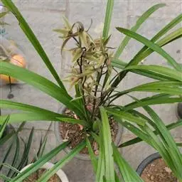 上盆(或翻盆)时间一般在春季3-4月或秋季10-11月。花盆以口小、盆深、底孔大的为佳。新从山上挖来的野生苗需理植于瓦盆(泥盆)中,这样兰花泥易干,通气性好.容易发根;2-3年后方可换人紫砂盆或瓷盆。兰花种植(在盆中)的方法与一般花卉不同,尤其是名种兰花,翻种移盆必须洗根。方法足将根浸入清水中,用旧牙刷或毛笔轻轻洗刷,切勿用力过大伤根;用剪刀将残叶、黄叶、断裂根、发黑腐烂根剪去,注意勿伤幼芽。然后将处理好的植株放在阴凉通风处晾干,待根部发白并显细小皱纹柔软时,再植入盆中。