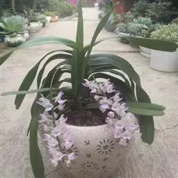 假鳞茎椭圆形至近球形,长1-2.5厘米,直径1-2厘米,有2-3节,外被撕裂成纤维状的鞘。叶2枚,偶有1枚,生于假鳞茎顶端,线状披针形或线形,长20-28厘米,宽0.8-1.8厘米,纸质,先端渐尖,基部收狭成柄,有关节,关节下方由叶柄套迭成假茎状,长3-5厘米。花葶从假鳞茎侧面发出,直立,长20-30厘米,中下部有2-3枚筒状鞘;总状花序通常多少缩短,长2-6厘米,具较密集的花;花苞片卵状披针形,长3-5毫米;花梗和子房长7-12毫米;花10余朵或更多,通常白色并有紫纹;萼片长圆状披针形,长9-11毫米,宽2.5-3.5毫米,先端渐尖;侧萼片斜歪并略宽于中萼片;花瓣狭卵形至卵状披针形,长9-10毫米,宽3-3.5毫米;唇瓣轮廓为长圆状倒卵形,长7.5-9毫米,近基部处3裂,基部有长约1毫米的爪;侧裂片线形,长2-3毫米,宽约0.7毫米,先端钝,边缘多少具细缘毛;中裂片近椭圆状倒卵形或菱状倒卵形,上半部边缘多少皱波状,先端有不规则缺刻,下半部边缘多少具细缘毛,较少近无毛;唇盘上在两枚侧裂片之间具1条短褶片状胼胝体,胼胝体中央有纵槽;蕊柱长约3毫米,基部肥厚并略扩大。蒴果狭椭圆形,长约2厘米,宽约8毫米。花期5-6月,果期9-10月。