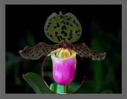 假鳞茎长圆状卵球形至近方形,长达2厘米,宽1厘米。叶1枚,生于假鳞茎顶端,披针形,长可达30厘米,宽约1.7厘米,具明显的脉;叶柄长达10厘米。花葶从假鳞茎侧面发出,长达35厘米,中下部有2枚筒状鞘;总状花序具约20朵花;花苞片披针形,长约5毫米;花梗和子房长约1.2厘米;花大,张开,直径达1.5厘米,棕绿色或黄绿色,但唇瓣淡粉红色至白色并有紫色斑点;中萼片线状披针形,长1.5-1.6厘米,宽约3毫米,先端近急尖;侧萼片宽披针形,长约12毫米,宽3毫米;花瓣长圆状披针形,长约13毫米,宽约3毫米,先端钝;唇瓣长达11.6毫米,3裂,基部有长爪;侧裂片长圆形,长约4.2毫米,宽1.2毫米,稍内弯,先端钝;中裂片卵状椭圆形,长为唇瓣的3/5,宽约6毫米,边缘波状;唇盘上有2条半月形的纵褶片,位于两枚侧裂片之间和中裂片基部上方,长达2.6毫米,高约1毫米;蕊柱长达8.3毫米。花期5-6月。