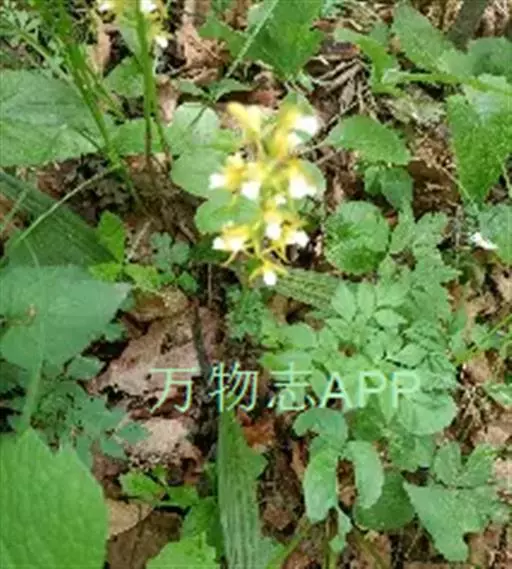 假鳞茎长圆形或近卵球形,长6-9(-15)毫米,宽5-6毫米,具2-3节,以根状茎相连接;根状茎纤细,直径1-2毫米。叶1枚,生于假鳞茎顶端,卵形至狭椭圆形,长2-4厘米,宽0.8-1.5厘米,先端渐尖,基部近圆形或宽楔形;叶柄长1-3厘米。花葶从假鳞茎侧面发出,长10-20厘米,近直立,中下部具2-3枚筒状鞘;总状花序长2.5-6厘米,通常具5-14朵花,罕有减退为2-3花;花苞片卵状披针形,长约1毫米;花梗和子房长3-5毫米;花直径约1厘米;萼片与花瓣上面暗黄色,背面栗色,唇瓣白色而有紫色斑;萼片近狭长圆形,长6-7毫米,宽1.5-2毫米,先端钝或急尖;侧萼片略斜歪;花瓣镰状长圆形,长5.5-6.5毫米,宽约2毫米,先端钝或急尖;唇瓣轮廓近倒卵状长圆形,长5-7毫米,下部约1/3处3裂,基部无爪或有短爪;侧裂片近狭长圆形或狭卵形,稍内弯,长约0.8毫米,宽约0.5毫米;中裂片近倒卵状椭圆形,长约4.5毫米,边缘稍波状,有黑色或紫色斑点;唇盘基部有2条短的纵褶片;蕊柱粗短,长2-2.5毫米。花期6-7月。