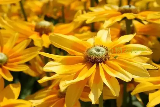 金光菊(学名:Rudbeckia laciniata L.):又名黑眼菊、黄菊、黄菊花、假向日葵等,属桔梗目、菊科多年生草本,茎无毛或稍有短糙毛。叶互生,无毛或被疏短毛。头状花序单生于枝端,具长花序梗。总苞半球形;花托球形;舌状花金黄色;舌片倒披针形;管状花黄色或黄绿色。瘦果无毛,稍有4棱。花期7-10月。