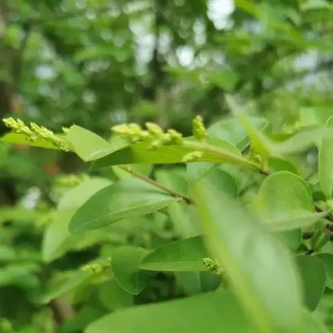 花小,总状花序腋生,长1-2厘米,花梗极短,长约3毫米;花萼4-6片,卵形,长2.5-3.5毫米,外面有短毛;花瓣缺;雄花有多数雄蕊,花丝细长,长约4.5毫米,花药椭圆形,底着药;花盘由多数腺体组成,包围着雄蕊;雌花的萼片与雄花同;子房椭圆形,无毛,长约4.5毫米,1室,有2侧膜胎座,花柱短,柱头2裂;花盘圆形,边缘稍波状。