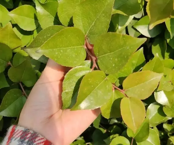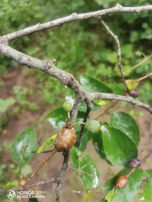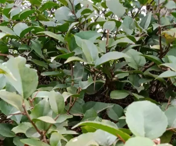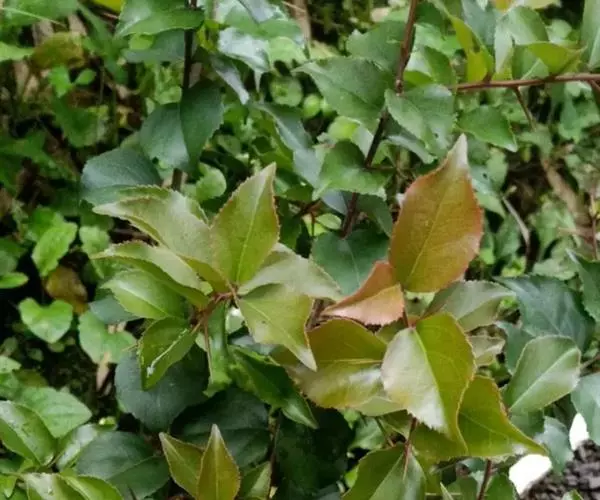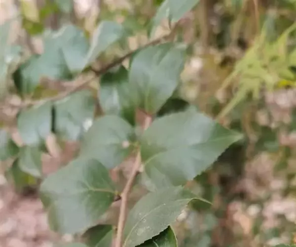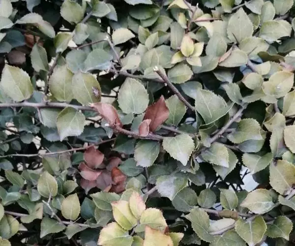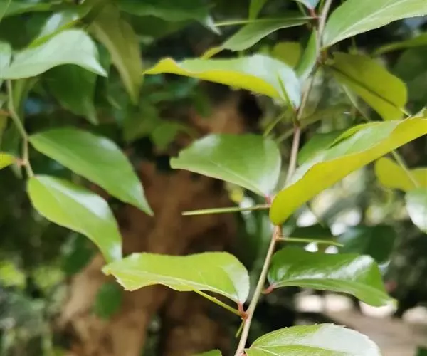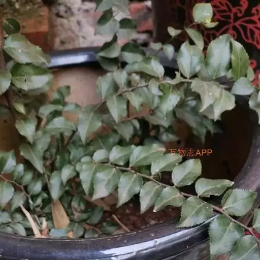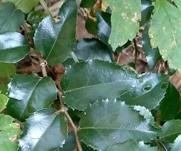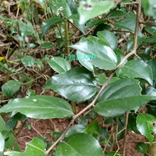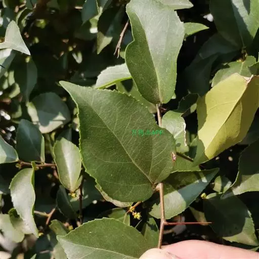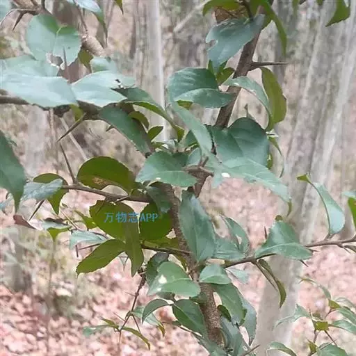 柞木 (原变种),常绿大灌木或小乔木,高4-15米;树皮棕灰色,不规则从下面向上反卷呈小片,裂片向上反卷;幼时有枝刺,结果株无刺;枝条近无毛或有疏短毛。叶薄革质,雌雄株稍有区别,通常雌株的叶有变化,菱状椭圆形至卵状椭圆形,长4-8厘米,宽2.53.5厘米,先端渐尖,基部楔形或圆形,边缘有锯齿,两面无毛或在近基部中脉有污毛;叶柄短,长约2毫米,有短毛。