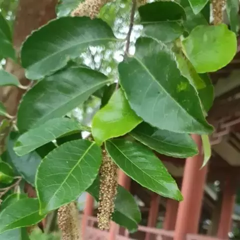 柞木(拉丁学名:Xylosma racemosum(Sieb. et Zucc.)Miq. ),别名:凿子树,蒙子树,葫芦刺,红心刺,也称蒙古栎;大风子科柞木属常绿大灌木或小乔木,高可达15米;树皮棕灰色,叶薄革质,雌雄株稍有区别,通常雌株的叶有变化,叶柄短,总状花序腋生,花小,花梗极短,花萼卵形,花瓣缺;花丝细长,花药椭圆形,子房椭圆形,浆果黑色,球形,种子2-3粒,卵形,花期春季,果期冬季。