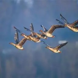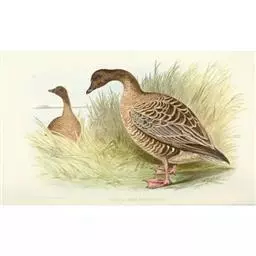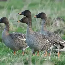 豆雁,雁形目鸭科。成鸟头、颈、背灰褐色,带淡黄色羽缘;尾上覆羽白色,尾羽黑褐色带白端,…