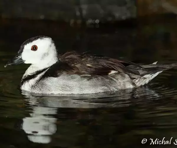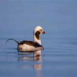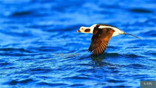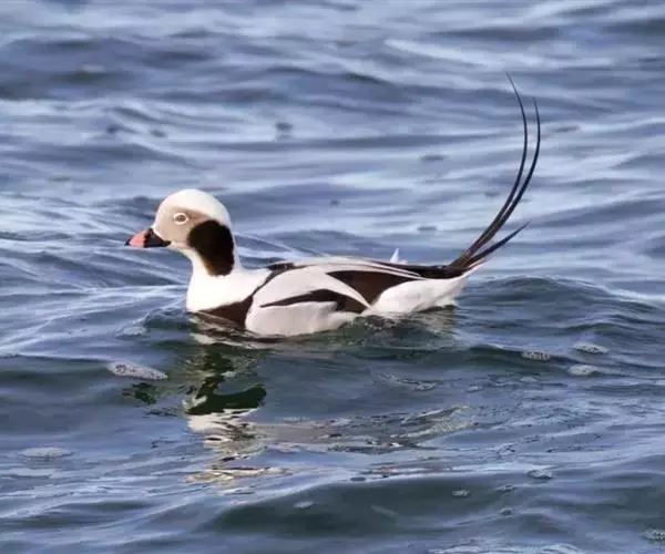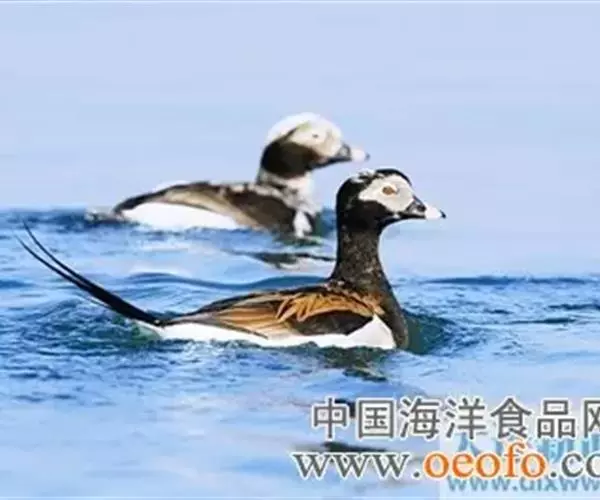 长尾鸭(学名:Clangula hyemalis)体长约58厘米,是中等体型的灰、黑及白色鸭,中央尾羽特长,雄鸟胸部的黑色斑块为特征。分布范围遍及全北界。 是一种非常罕见的冬候鸟。繁殖期主要栖息于北极冻原上的水塘和小型湖泊中,也栖息在流速缓慢的河流及河口地区。非繁殖季节主要栖息在沿海水域,海岛和海湾,偶尔到内陆大的湖泊与江河中。以动物性食物为食。繁殖季节主要以淡水动物如石蚕等昆虫的幼虫、虾、甲壳类、小鱼和软体动物为食,冬季则主要以海生动物为食。广泛分布于整个北半球。繁殖在北极地区,包括北美洲北部、格陵兰岛、冰岛、欧洲和亚洲北部和白令海中的一些岛屿,南到芬兰南部、阿拉斯加南部和加拿大拉布拉多半岛。