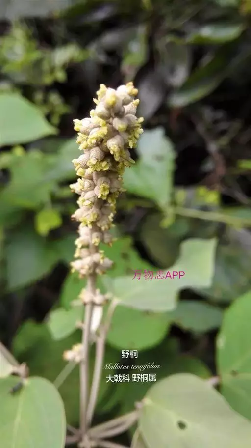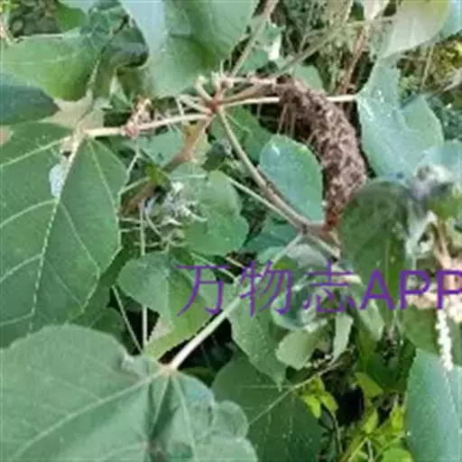 灌木或小乔木,高1-3(-4)米;小枝、叶柄和花序均密被淡黄色星状柔毛和散生橙黄色颗粒状腺体。叶互生,卵形或阔卵形,稀心形,长和宽均6-16(-25)厘米,顶端急尖或渐尖,基部截平或稍心形,边缘具疏齿,上面干后黄绿色或暗绿色,无毛或被疏毛,下面被灰白色星状绒毛,散生橙黄色颗粒状腺体;基出脉5条,最下一对常不明显,侧脉6-7对;基部近叶柄处有褐色斑状腺体2个;叶柄长5-15厘米。花雌雄异株,雄花序为开展的圆锥花序或穗状,长15-30厘米,苞片卵形,长约1.5毫米,雄花多朵簇生于苞腋;雄花:花梗长1-2.5毫米;花蕾卵形或球形,长约2.5毫米,花萼裂片4,卵形或卵状三角形,长约3毫米,外面密生淡黄色星状毛,内面散生颗粒状腺体;雄蕊50-75枚,长约3毫米;雌花序穗状,长15-30厘米,稀有分枝,花序梗长5-15厘米,苞片近三角形,长约2毫米;雌花:花梗极短;花萼裂片3-5枚,卵形或近三角形,长2.5-3毫米,外面密生灰白色星状毛和颗粒状腺体;花柱3-4枚,长约3毫米,基部合生,柱头密生羽毛状突起。蒴果近球形,密生被灰白色星状毛的软刺,软刺线形,黄褐色或浅黄色,长5-10毫米;种子近球形,直径约3.5毫米,褐色或黑色,具皱纹。花期6-9月,果期8-11月。
