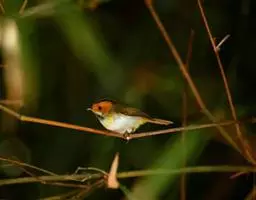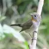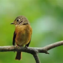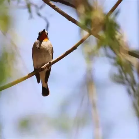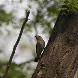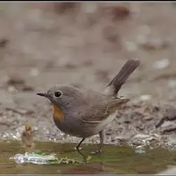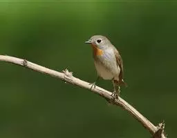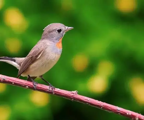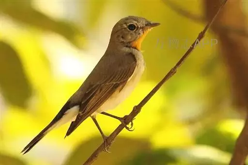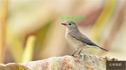 红喉姬鹟(学名:Ficedula parva)小型鸟类,体长11~13厘米。雄鸟上体灰黄褐色,眼先、眼周白色,尾上覆羽和中央尾羽黑褐色,外侧尾羽褐色,基部白色。颏、喉繁殖期间橙红色,胸淡灰色,其余下体白色,非繁殖期颏、喉变为白色。雌鸟颏、喉白色,胸沾棕,其余同雄鸟。