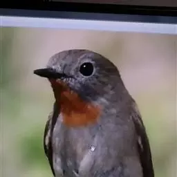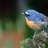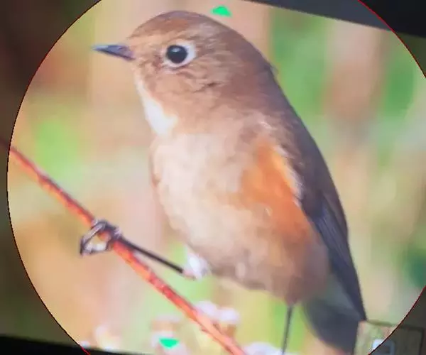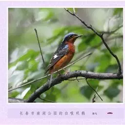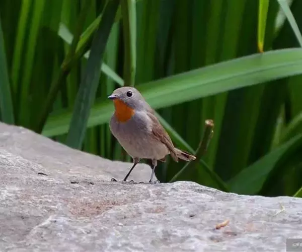 雌鸟颏、喉不为橙红色而为白色或污白色,胸沾棕黄褐色,其余似雄鸟。