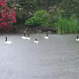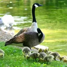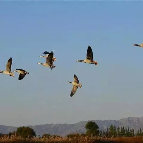 黑雁是雁形目鸭科黑雁属鸟类,又称黑鹅。头、颈、胸、嘴及脚黑褐色;虹膜褐色;背及两翼灰褐色;尾下覆羽白色;胸侧及胁部多近白色纹;颈部两侧各具一个特征性白色横纹,在颈前后断开,未能联成颈环。幼鸟颈部无白斑,而翅上多白色横纹。黑雁繁殖于北美洲、西伯利亚极地的苔原冻土带,越冬于南方沿海的草地及河口。在中国安徽也能见其身影。主要栖息在海湾、海港及河口等地,在冬季里大多出现在有耐碱植物生长的湖泊和水库周围,也出现在周围地势低洼的咸水湖和沿海地区,偶尔还出现在农田地里。性活跃,喜集群,常成群活动和栖息。主要以植物性食物为食。繁殖期在6-8月,雌鸟孵卵,雄鸟通常在距巢100米以内范围内守候警诫。雌鸟孵卵时常将头和颈朝地面平伸出去以降低高度。孵化期为22-28天。黑雁被列入中国林业局2000年8月1日发布的《国家保护的有益的或者有重要经济、科学研究价值的陆生野生动物名