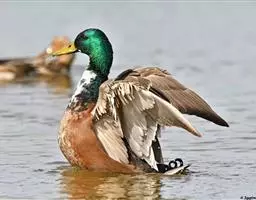 绿头鸭属游禽,大型鸭类。体长47-62厘米,体重大约1千克,外形大小和家鸭相似。雄鸟嘴黄绿色,脚橙…