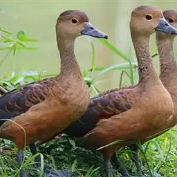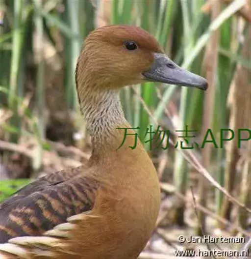 栗树鸭(学名:Dendrocygna javanica)体长37-42厘米,体重400-600克,是中等体型的红褐色鸭。头顶深褐,头及颈皮黄色,背褐而具棕色扇贝形纹,下体红褐。左右翅各有1枚形状特殊的飞羽,飞行中与空气摩擦能发出轻而尖的啸声。嘴形广平;秃颈;长腿,跗骨前缘被以网状鳞;后趾仅具狭形瓣蹼;后趾(连爪)的长度为其宽度(连同瓣蹼)的3.5-4倍。两性羽色均鲜艳。栖息于丘陵谷间小盆地或面积不大而浅水的水域以及水库中潮湿多草的小岛上。结小群活动于湖泊、沼泽、红树林及稻田。属半夜行性。飞行力弱,潜水能力强。以植物种子及嫩茎叶为主食。分布于亚热带地区,主要是巴基斯坦、中国、斯里兰卡、印度、孟加拉国、缅甸、泰国、中南半岛、琉球群岛、印度尼西亚,一直到印度洋中的岛屿,如安达曼群岛,尼科巴群岛等。