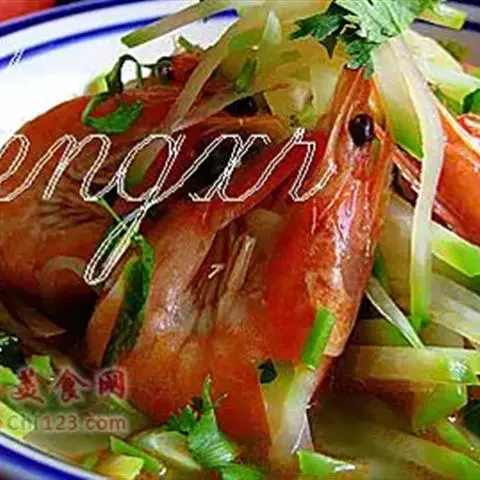 萝卜丝炖青虾是一道由青虾、青萝卜等做成的美食。