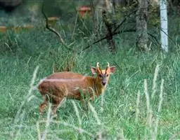 毛冠鹿是偶蹄目鹿科毛冠鹿属哺乳动物。耳外基部有长毛;上犬齿长大,稍向下弯,露出唇外;眼小;毛粗糙。…