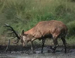 水鹿是热带、亚热带地区体型最大的鹿类,身长140-260厘米,尾长20-30厘米,肩高120-140厘米,体重100-200千克,最大的可达300多千克。雄鹿长着粗长的三叉角,最长者可达 1米。毛色呈浅棕色或黑褐色,雌鹿略带红色。颈上有深褐色鬃毛。体毛一般为暗栗棕色,臂部无白色斑,颌下、腹部、四肢内侧、尾巴底下为黄白色。