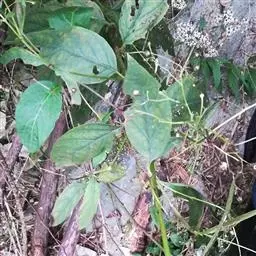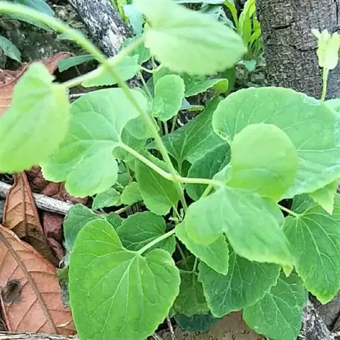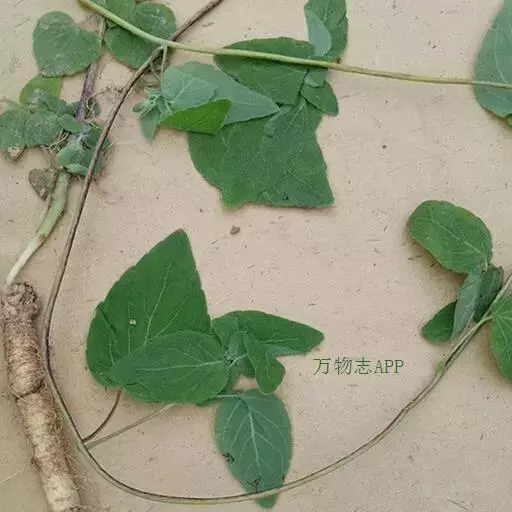 茎缠绕长约1-2米,直径2-4毫米,有多数分枝,侧枝15-50厘米,小枝1-5厘米,具叶,不育或先端着花,黄绿色或黄白色,无毛。叶在主茎及侧枝上的互生,在小枝上的近于对生,叶柄长0.5-2.5厘米,有疏短刺毛,叶片卵形或狭卵形,长1-6.5厘米,宽0.8-5厘米,端钝或微尖,基部近于心形,边缘具波状钝锯齿,分枝上叶片渐趋狭窄,叶基圆形或楔形,上面绿色,下面灰绿色,两面疏或密地被贴伏的长硬毛或柔毛,少为无毛。