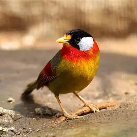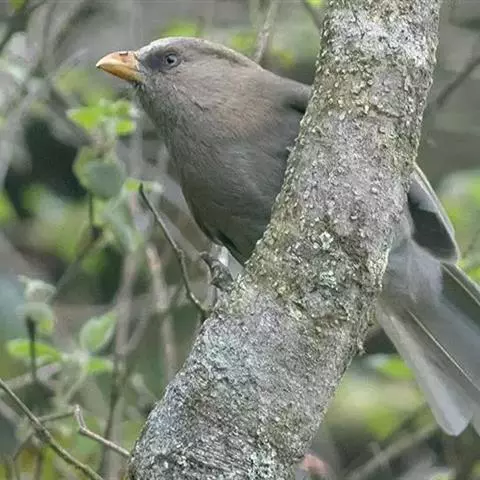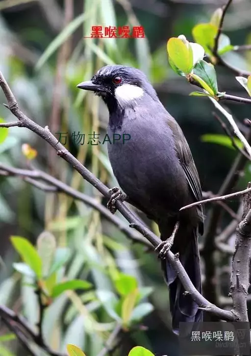 黑喉噪鹛(学名:Garrulax chinensis):共有5个亚种,体长23-29厘米,属中型鸟类。额基、眼先、眼周以及颏和喉黑色,额基黑色上面有一白斑,头顶至后颈灰蓝色,其余上下体羽多为橄榄灰沾绿至棕褐色。