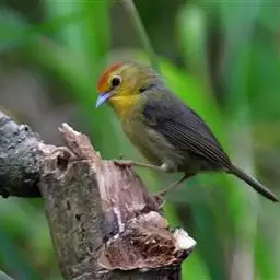红头穗鹛是雀形目画眉科伪穗鹛属鸟类。成鸟额至头顶或至枕部为棕红色;额基和眼先淡灰黄色;眼圈隐隐泛黄白色;颊和耳羽灰黄色缀有橄榄褐色;其余上体连同翼和尾的表面为橄榄绿褐色;飞羽和尾羽暗褐色,外缘沾茶黄色;下体颏、喉和胸浅灰黄色,具细黑羽干纹;腹和尾下覆羽橄榄褐绿色;腋羽和翼下覆羽淡灰黄色;虹膜棕红色;上喙角褐色,下喙暗黄色;脚黄褐色。红头穗鹛分布于亚洲东南部地区;在中国分布于秦岭及以南的广大地区,包括长江流域、华南、华中和西南地区。栖息于山地森林中。常单独或成对活动,有时也结小群或与棕颈钩嘴鹛等其他鸟类混群,在林下灌丛间来回跳跃穿梭。主食鞘翅目、鳞翅目、直翅目、膜翅目、双翅目和半翅目等昆虫,偶食少量植物种实。繁殖期在4-7月,营巢于茂密灌草丛或竹丛中。窝卵数4-5枚,卵白色且具棕斑,雏鸟晚成;雌雄亲鸟轮流孵卵,共同育雏。红头穗鹛为食虫益鸟,被列入中国林业局2000年8月1日发布的《国家保护的