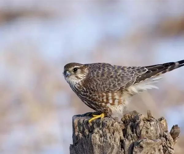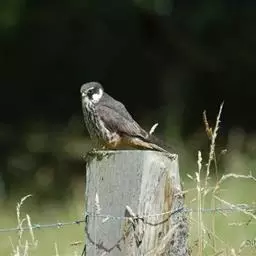 灰背隼(学名:Falco columbarius)属于隼形目、隼科,是小型猛禽。尾羽上具有宽阔的黑色亚端斑和较窄的白色端斑。后颈为蓝灰色,有一个棕褐色的领圈,成年雄性背部呈现蓝色,并杂有黑斑,是其独有的特点。栖息于开阔的低山丘陵、山脚平原、森林平原、海岸和森林苔原地带,特别是林缘、林中空地、山岩和有稀疏树木的开阔地方。主要以昆虫和鼠类等小型动物为食。通常营巢于树上或悬崖岩石上,偶尔也在地上。每窝通常产卵3-4枚,偶尔多至5-6枚,有时也有多至7枚和少至2枚的。中国国家二级保护动物。