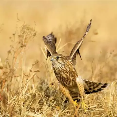 燕隼:是隼科、隼属的鸟类。体长约36厘米,体重140-340克。体形比猎隼、游隼等都小,为小型猛禽,…