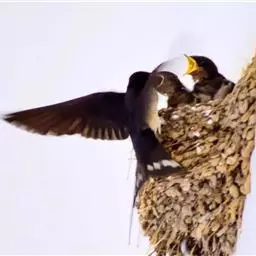 灰背隼 繁殖期为5-7月份,通常营巢于树上或悬崖岩石上,偶尔也在地上。特别喜欢占用乌鸦、喜鹊和其他鸟类的旧巢,有时自己也营巢。如果繁殖成功,巢还可以继续利用。巢的结构较为简陋,主要由枯枝构成,形状为浅盘状。每窝通常产卵3-4枚,偶尔多至5-6枚,有时也有多至7枚和少至2枚的。卵的颜色为砖红色,被有暗红褐色斑点。由亲鸟轮流孵卵,孵化期为28-32天。雏鸟为晚成性,孵出后由亲鸟轮流抚养25-30天后离巢。长大一些的幼鸟常常高兴地飞到空中去追逐飘舞的羽毛或者蒲公英的花序,并且向这些东西发动模拟进攻,这也是它们为了将来的捕猎生涯作准备。