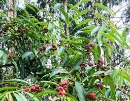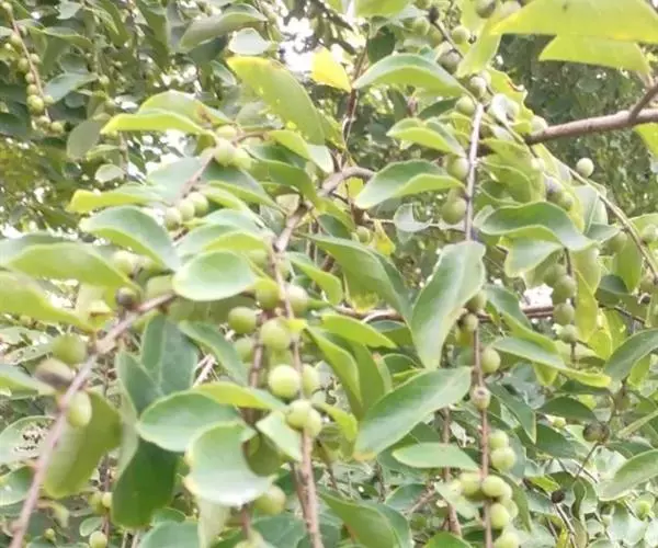 核果近圆球形,直径4-7毫米,2室;种子褐红色,长卵形,长3.5-4毫米,宽约3毫米,腹面压扁状,有纵槽,背面稍凸起,有纵条纹。花果期几乎全年。