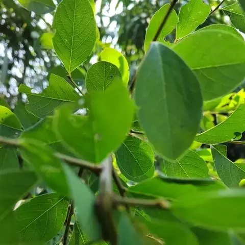 叶片纸质,长圆形、长椭圆形或倒卵状长圆形,稀近圆形,长3-9厘米,宽1.5-4厘米,顶端锐尖至钝,基部宽楔形至近圆,叶面粗涩,叶背浅绿色;侧脉每边9 12条,与支脉在叶面明显,在叶背凸起;叶柄长3-5毫米;托叶线状披针形,长约7毫米,顶端刚毛状渐尖,常早落。