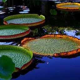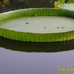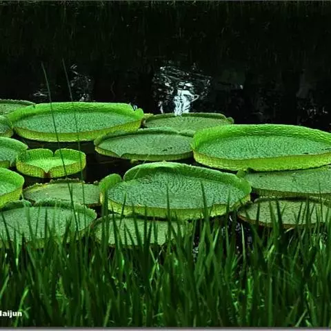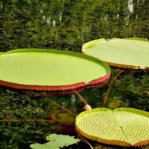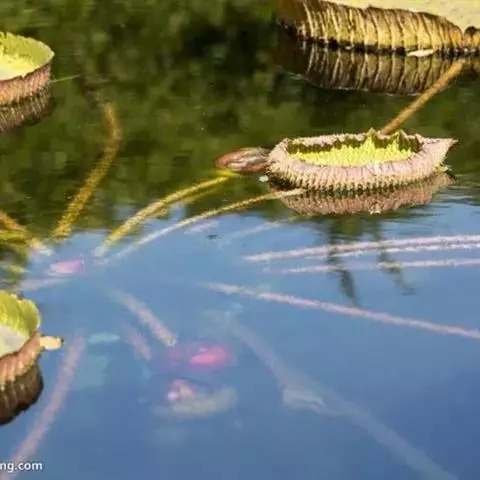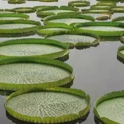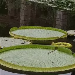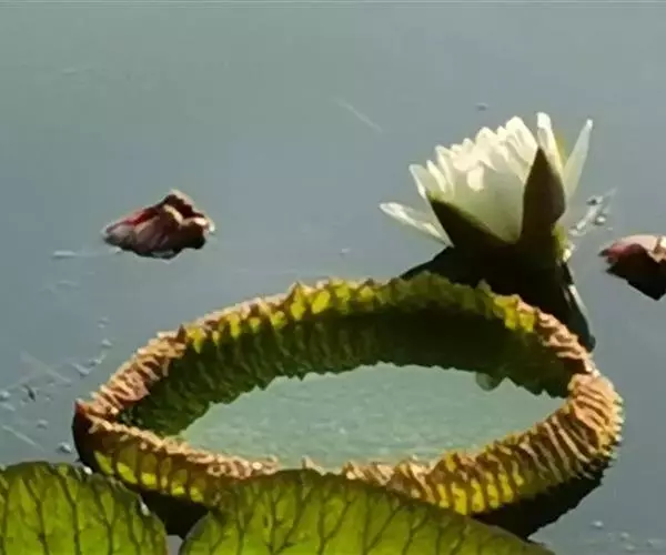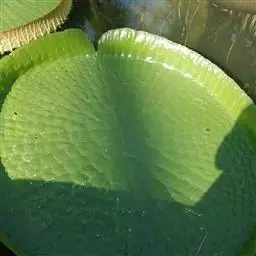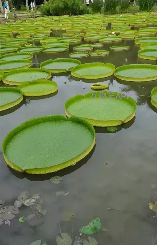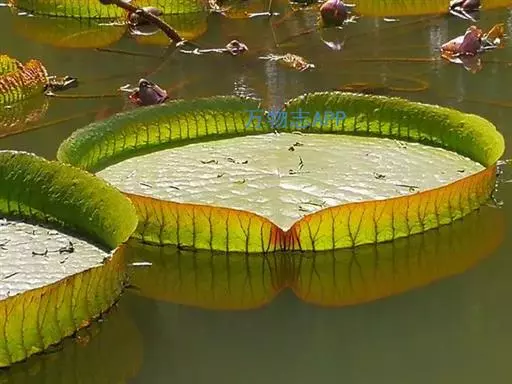 属睡莲科多年生或一年生大型浮叶草本。有直立的根状短茎和发达的不定须根,白色。果实成熟时,内含五六百粒种子,大小形状似豌豆,含有丰富淀粉,可食用,南美洲人因此称之为“水玉米”。王莲是水生有花植物中叶片最大的植物,其初生叶呈针状,长到2~3片叶呈矛状,至4~5片叶时呈戟形,长出6~10片叶时呈椭圆形至圆形,到11片叶后叶缘上翘呈盘状,叶缘直立,叶片圆形,像圆盘浮在水面,直径可达2米以上,叶面光滑,绿色略带微红,有皱褶,背面紫红色,叶柄绿色,长2~4m,叶子背面和叶柄有许多坚硬的剌,叶脉为放射网状。