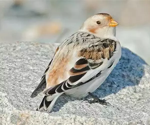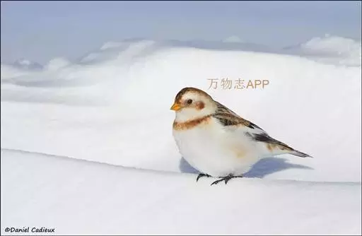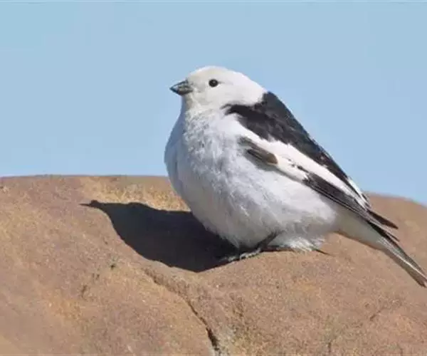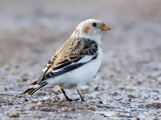 雪鹀(学名:Plectrophenax nivalis):体重32-45克,体长145-185毫米,属小型鸣禽,是一种体形矮圆的黑白色鹀。繁殖期雄鸟特征明显,白色的头、下体及翼斑与其余的黑色体羽成对比。繁殖期雌鸟对比不强烈,头顶、脸颊及颈背具近灰色纵纹,胸具橙褐色纵纹。第一冬的鸟黑色较少,且散有橙褐色,尤其在头顶及胸上。幼鸟的头及胸灰色。虹膜色深;嘴成鸟黑色,幼鸟及第一冬鸟偏黄;脚黑色。