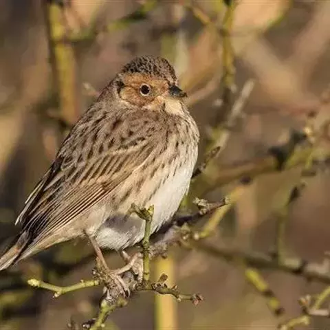 栗斑腹鹀:属小型鸣禽。体重19-25克,体长145-167毫米。头顶至背栗红色,眼先和颧纹黑褐色,…