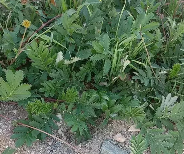 灰叶蕨麻(学名:Potentilla anserina L. var.sericea Hayne):该变种植株呈灰白色,叶柄、花茎被平展白色绢状柔毛,小叶两面密被紧贴灰白色绢状柔毛,或上面比下面毛较疏呈灰绿色。分布于中国黑龙江、内蒙古、甘肃、新疆、云南、西藏。生长于海拔500-3700米的山坡草地、草甸、阴湿处。
